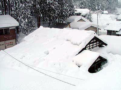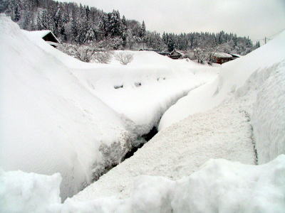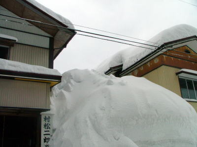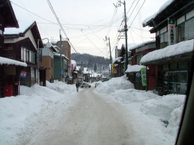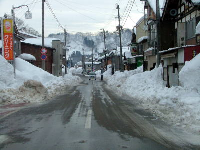 2月8日 松代本町 松代本町を通ると この状態。いつもは流雪溝に流されて