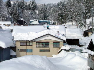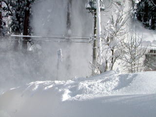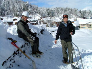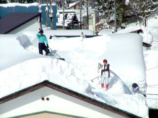 トヨ(雪を流す板)の上に乗って、雪と共に ドッスッン!?