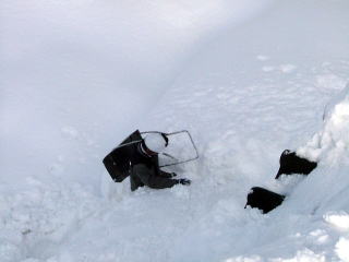 朝(7時)雪が降っていました。ひざ上までの雪。長靴が埋まってしまい、