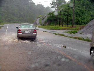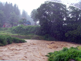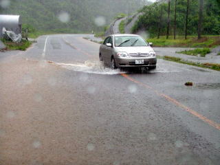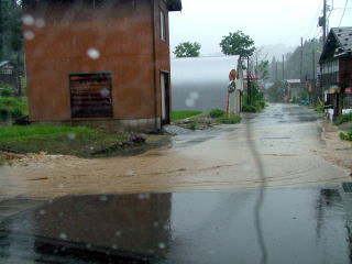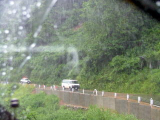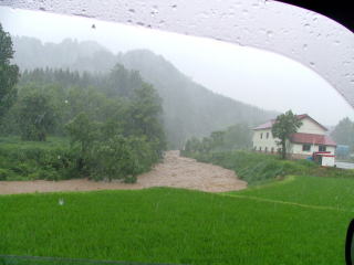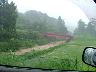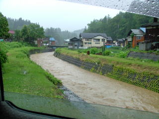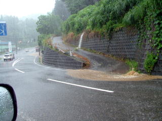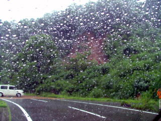 車の中より撮影。窓を開けただけでびしょぬれ状態。