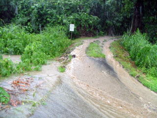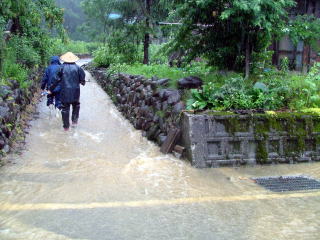 どうまん沢からの水 道路を川のように