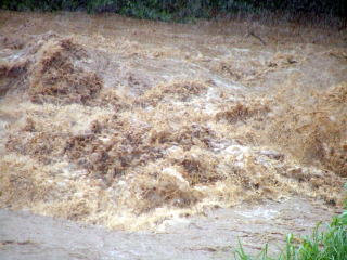 普段の水位より まだ高いし、濁っている