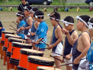 奴奈川太鼓のお披露目、低学年も参加してます。