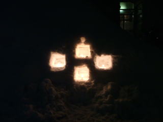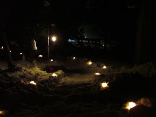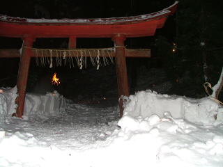 雪国の初詣の風物詩として各家庭で自宅前につくられた灯明です。