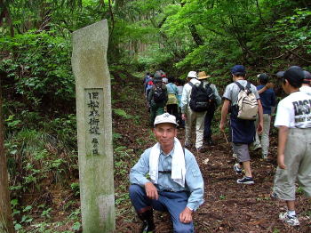 「旧松本街道 塩の道」道標の前で