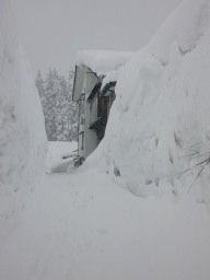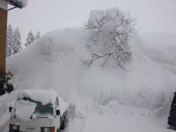 | 柿木もてっぺんまで雪に埋もれてしまいました。 ちなみに根っこの部分は駐車地面より1m下です。 |