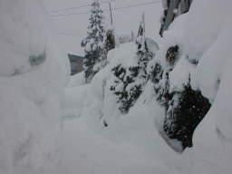 | 正面の雪の塊は高さ4メートル近くの雪囲いされた木です。 | |