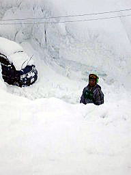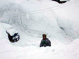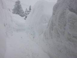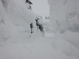| 車道に出るまでの道の両脇がご覧のようなありさま。 積雪は3メートルに達したか。 |