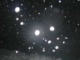 | 3人がかりで2日間目いっぱい雪下ろしをしてどうにか終わりました。 日が暮れてシャッターを切ったので降る雪しか写りませんでした。 |